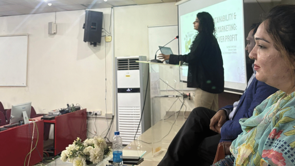 The interactive session focused on real-world digital transformation strategies, the evolving role of marketing in the tech era, leadership in entrepreneurial ventures, and how young professionals can build successful careers in Pakistan’s booming digital economy. Students actively participated with thought-provoking questions on startup challenges, client acquisition, team building, and leveraging emerging technologies for business growth.